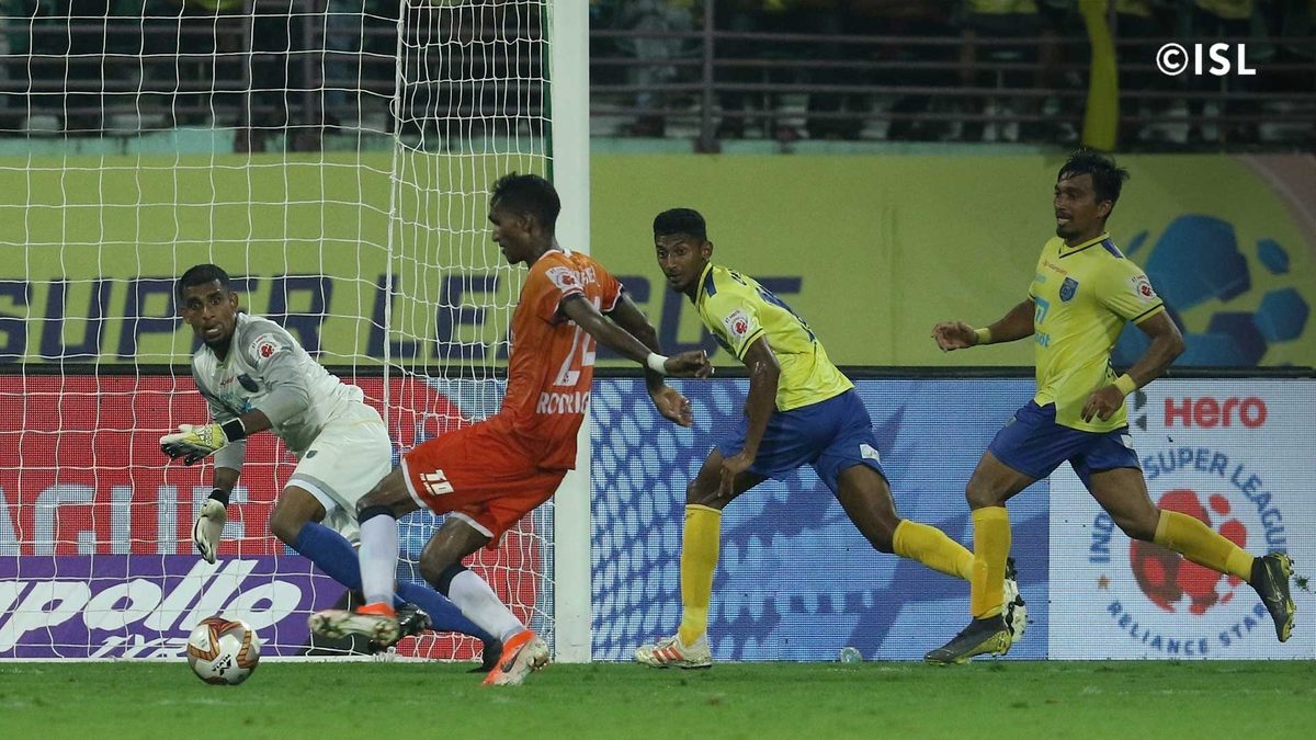 Kerala raced off the blocks and took the lead 61 seconds in. Fall’s weak clearance from a long throw fell for Cidoncha, who took it on first time. The volley eluded Goa goalkeeper Mohammad Nawaz and nestled into the net.
