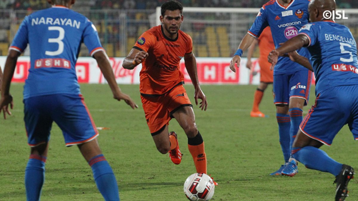 Delhi Dynamos’ Adil Khan in action against FC Goa.