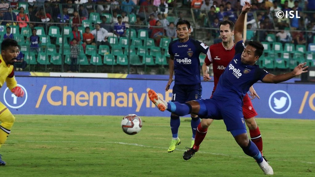 Bartholomew Ogbeche marked his presence in the #HeroISL, and how.#LetsFootball #CHENEU #FanBannaPadega pic.twitter.com/LcUqkvVKQP