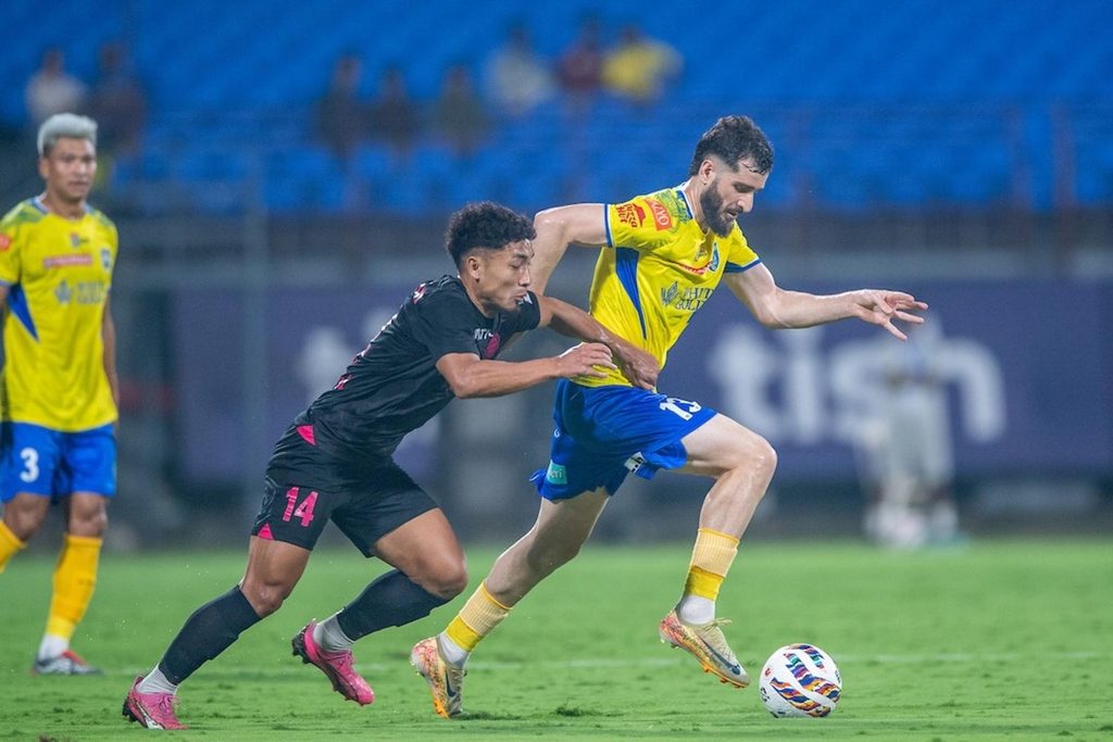Both goalkeepers were called into action in an open start that set the tone for the contest. Víctor Bertomeu forced a sharp save from Phurba Lachenpa at his near post after being released by Korou Singh’s lofted pass. The Spanish forward later glanced a header over the bar from another Korou delivery, before Lallianzuala Chhangte tested the Kerala Blasters goalkeeper at the other end.