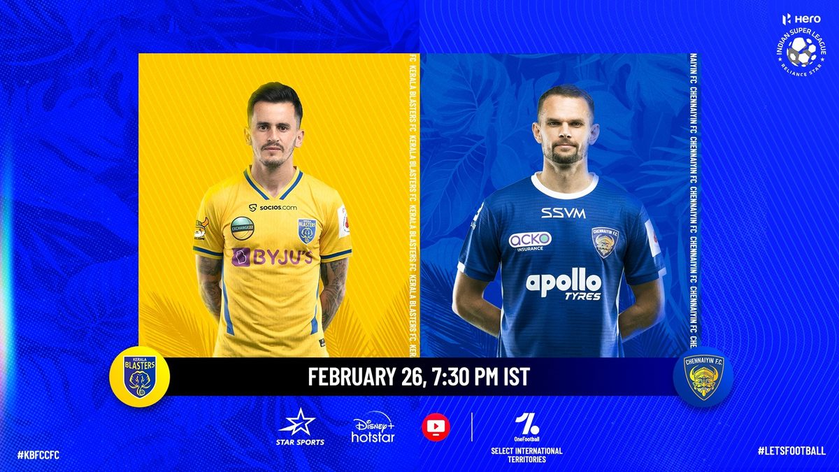 Kerala Blasters FC find themselves in dire straits as they need nothing less than a win to keep their top-four hopes alive, against Chennaiyin FC in their Hero Indian Super League (ISL) 2021-22 match at the Tilak Maidan Stadium, in Vasco, on Saturday evening.