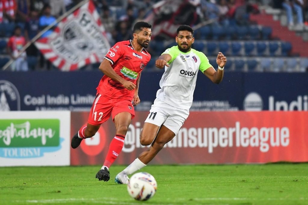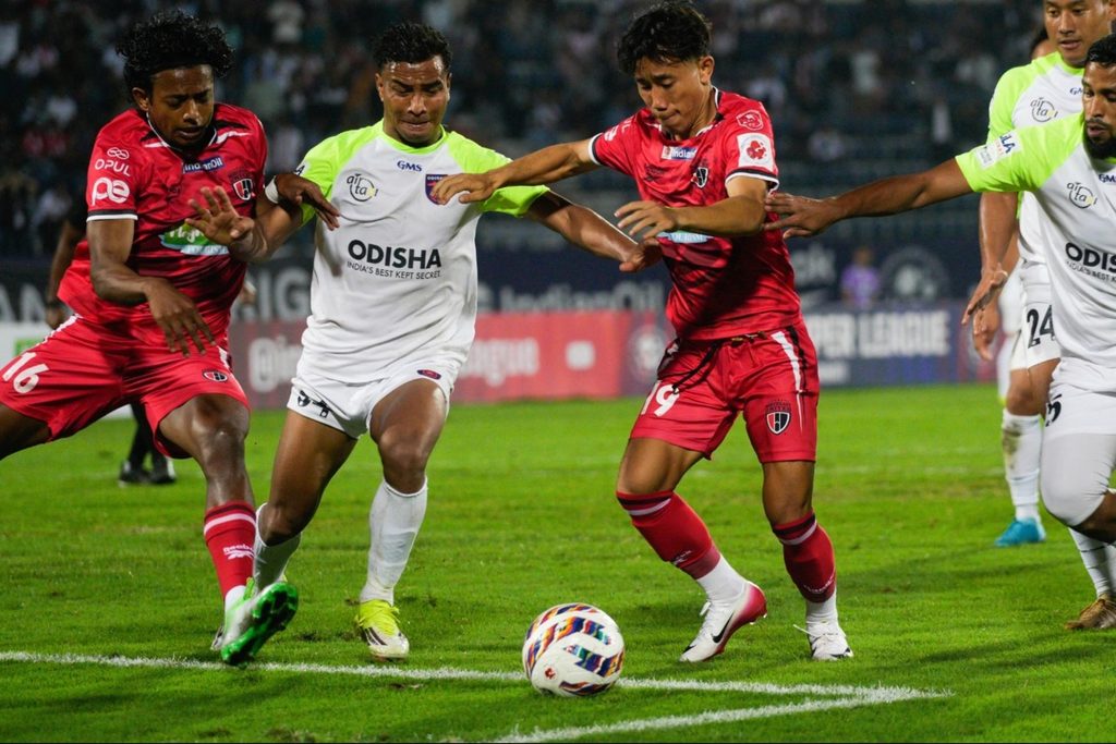 Both teams exchanged chances in an open spell of play, with multiple efforts from NorthEast United attackers being blocked, while Odisha also threatened through right winger Isak Vanlalruatfela. A goal-line clearance from midfielder Lalthathanga Khawlhring denied the hosts during this phase.