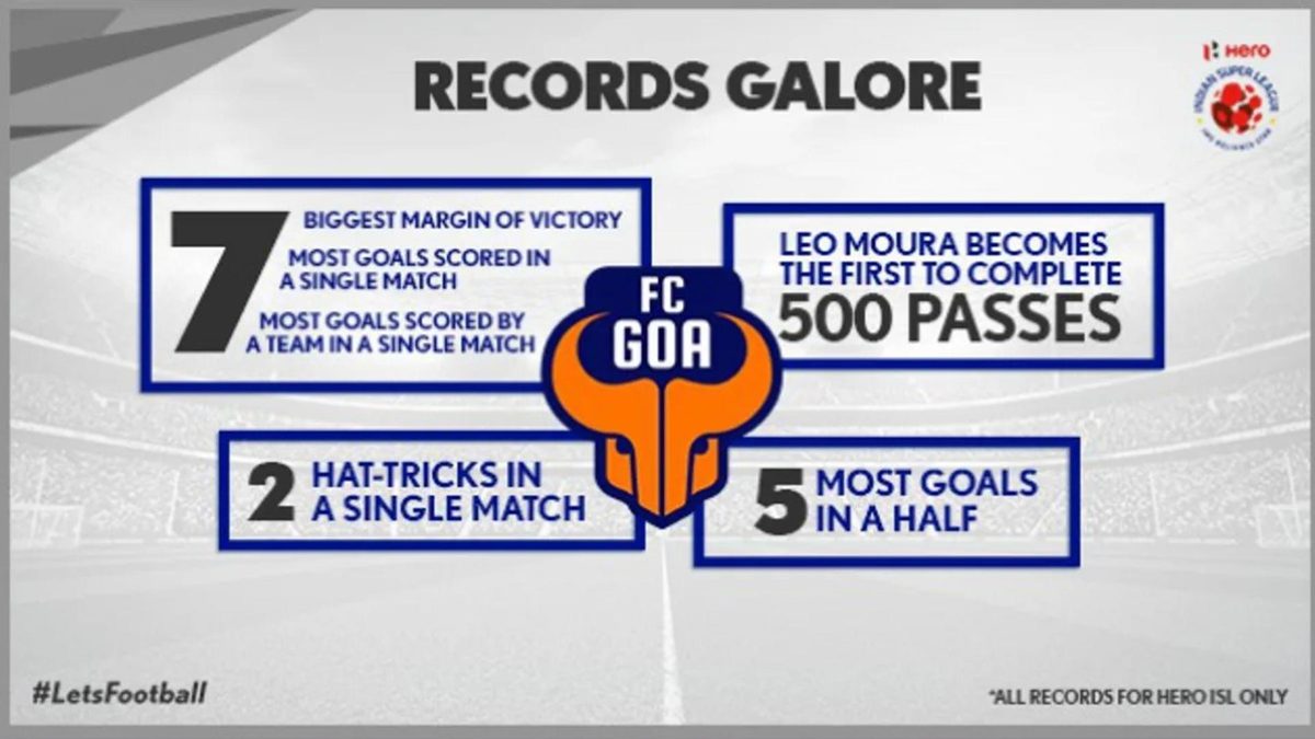 • The highest winning margin recorded by any team now belongs to Goa after their exploits on Tuesday night. Mumbai previously held the record, courtesy of their 5-0 win against FC Pune City in Season 1.