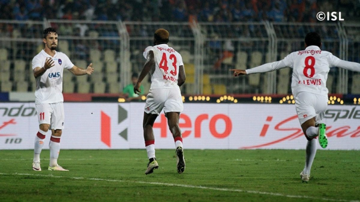 Mandar Rao Dessai came closest to breaking the deadlock in 26th minute when a thunderous left-footed shot from distance nearly took the paint off the post. Gadze had another shot on goal three minutes later after Florent Malouda set him up. This time the 22-year-old missed the target to Delhi’s despair.